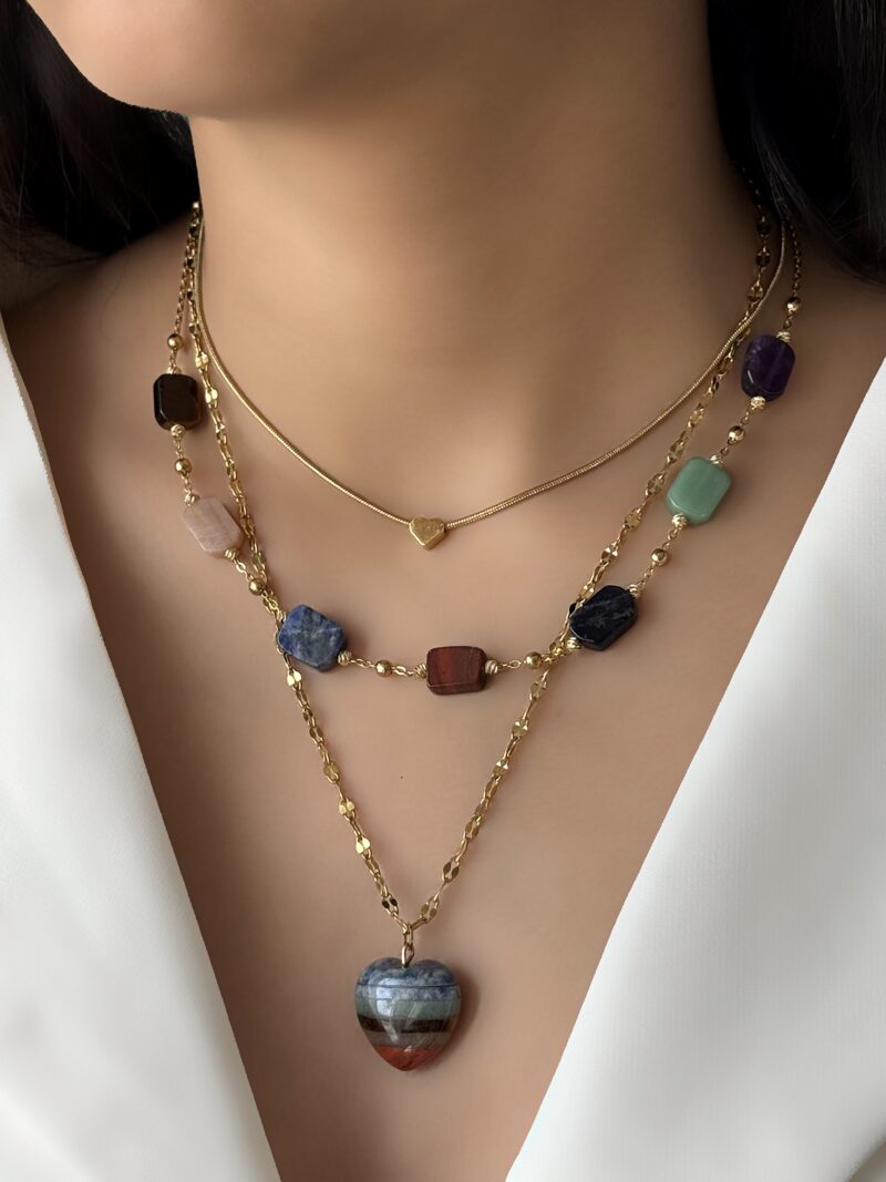 خانه اکسسوری گردنبند گردنبند سه لاین استیل با سنگ هفت چاکرا