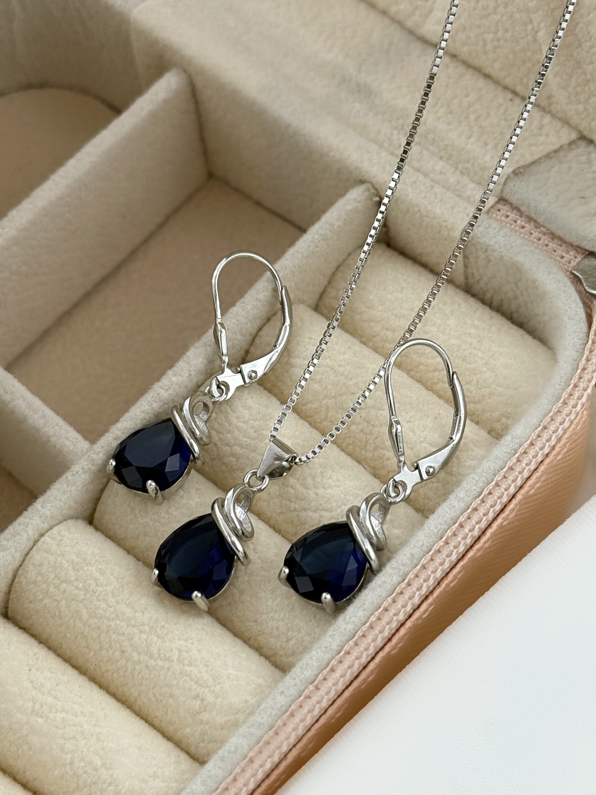 نیم ست ونکلیف نقره ایتالیایی نگین مخراج کاری شده دارای حک عیار ۹۲۵ ارسال همراه با فاکتور