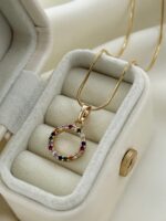 گردنبند دولاین استیل ابکاری طلا تلفیق باسنگ اماتیست